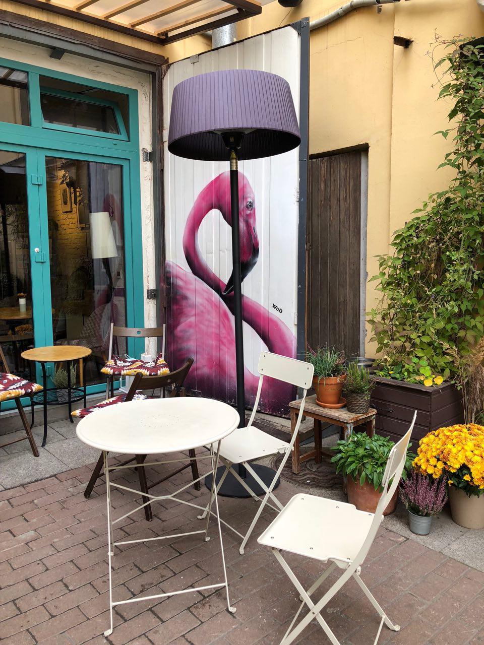 Маленькое уютное кафе с нарисованными фламинго на входе скорее похоже на чью-то гостиную, чем на общепит. Здесь подают закуски к вину и само вино, кофе, десерты. Можно и пообедать — например, сытным салатом или чем-то горячим из небольшого меню.