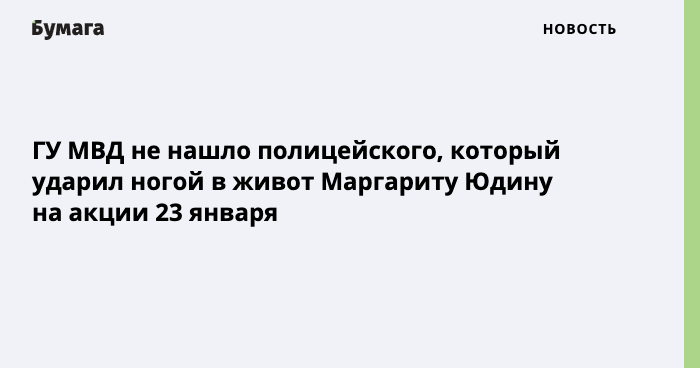 ГУ МВД не нашло полицейского, который ударил Маргариту Юдину на акции 23 января