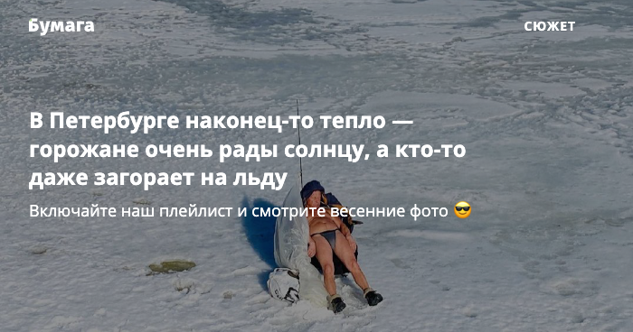 В Петербурге наконец-то тепло — горожане очень рады солнцу, а кто-то даже загорает на льду 😎