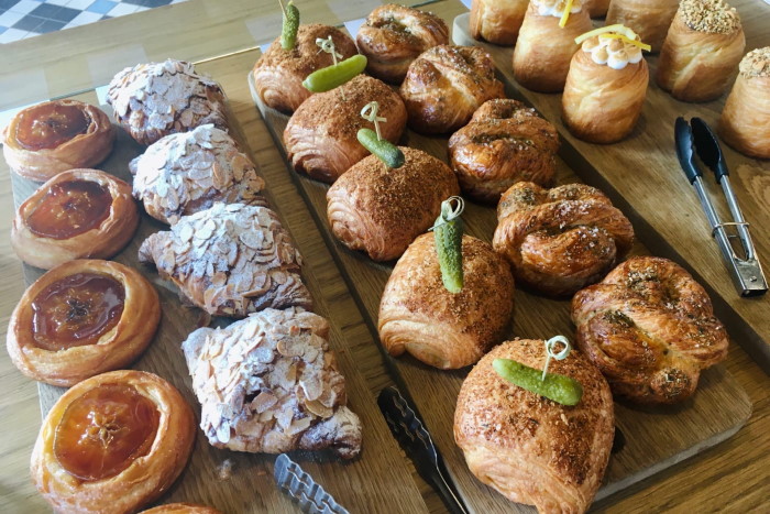 Среди выпечки есть круассаны, булка с кардамоном, слойка с лососем и другие позиции. Кроме того, в «Подписных» выпекают две разновидности хлеба (пшеничный и ржаной), а также готовят сэндвичи: с сыром и прошутто.