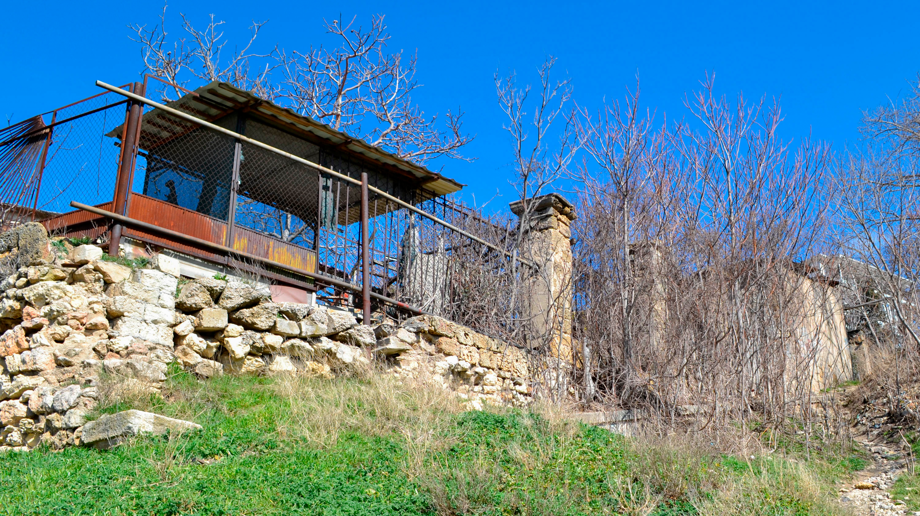 Оборонительная линия идет к одному из зданий бывшей школы-интерната №3. Учреждение просуществовало до 2015 года, когда зимой при российских руководителях умудрились разморозить трубы системы отопления. Впоследствии здание было признано аварийным и чуть позже власти города передали его Следственному комитету России под кадетский корпус. Раньше воспитанники интерната следили за состоянием мемориального объекта, сегодня здесь все завалено мусором.
