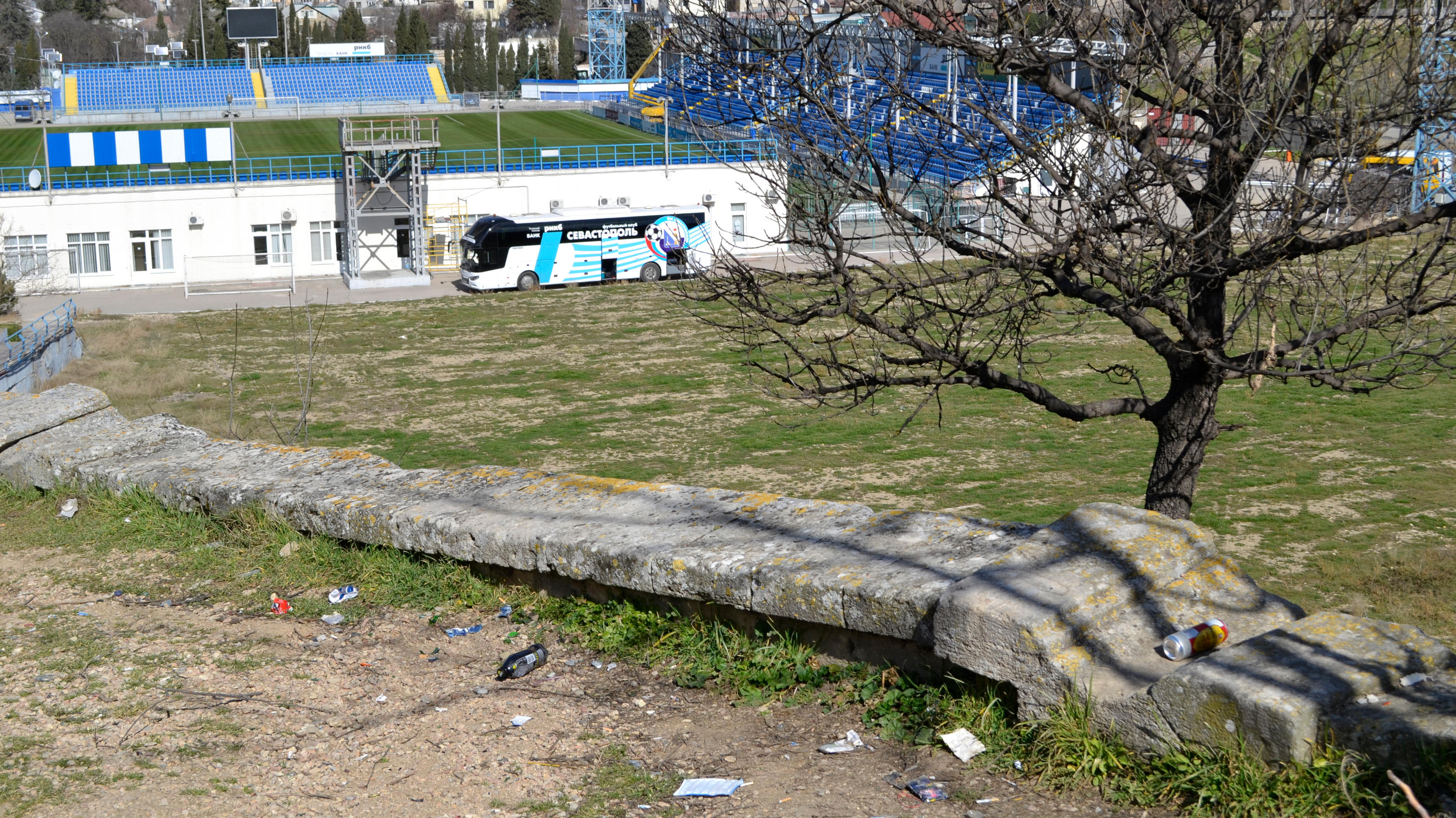 Мемориальная стенка вдоль стадиона местами разрушена, нет верхних плит. С этой стены долгие годы болельщики смотрели матчи любимой команды – те, кому не хватало мест на стадионе или не было денег на билет.