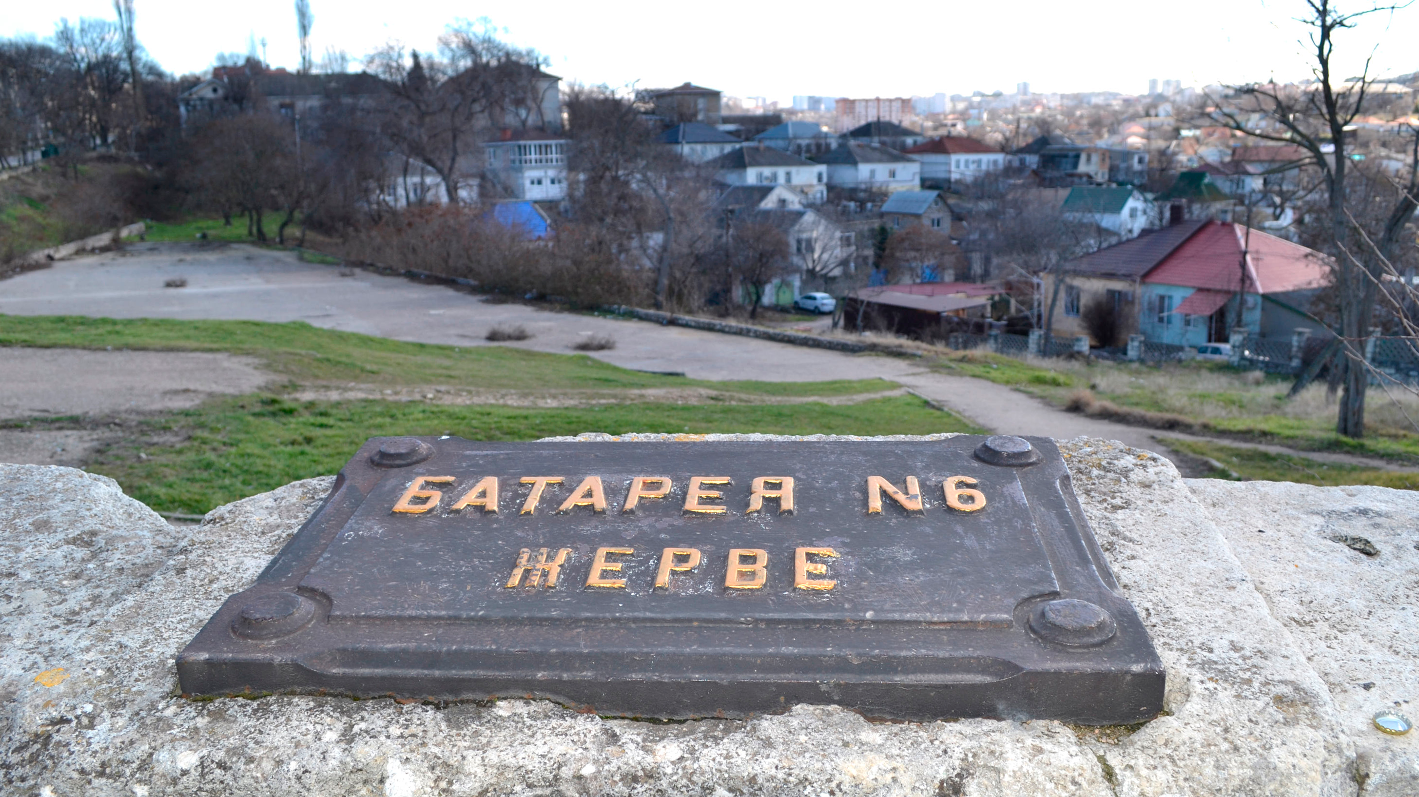 На Малаховом кургане – господствующей высоте – располагался Корниловский бастион – самое значительное укрепление главной линии обороны. В 1905 году на территории Малахова кургана тоже по проекту Энберга были сооружены девять мемориальных обозначений на местах батарей, защищавших бастион в 1854-1855 годах. Выполнены они в том же стиле, что и мемориальная стенка вдоль оборонительной линии и представляют собой невысокие каменные стенки, в центре которых прикреплены чугунные доски с номером и названием батареи (батареи назывались по фамилиям командиров). На фото – батарея №74 Емельянова, прикрывавшая южное направление.