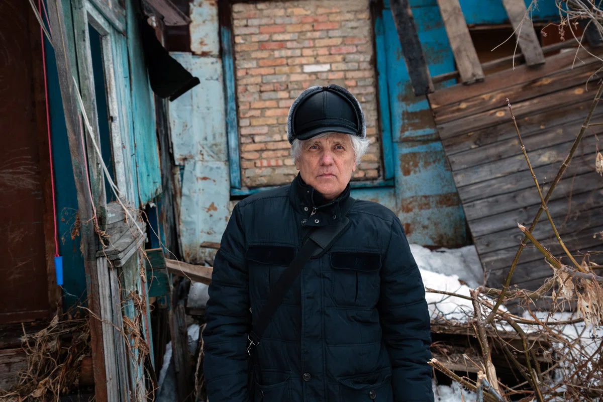 Виктор Георгиевич Пискунов — журналист местной газеты «Сурские просторы» — показывает нам все, что осталось от их квартиры после короткого замыкания и пожара два года назад, когда семья чудом спаслась: «Вот в этой норе мы жили втроем».