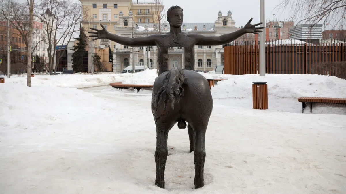 (продолжает) Может, на улице Славы не вытаскивать хороший гранитный бордюр еще 90-х годов и не менять его на сделанный из бетона? Ну помоги людям, даже попиарься на этом, сделай репортаж, но помоги. Вместо этого — берут деньги, на которые людей можно бы было расселить из аварийного жилья, ставят памятник кентавру.