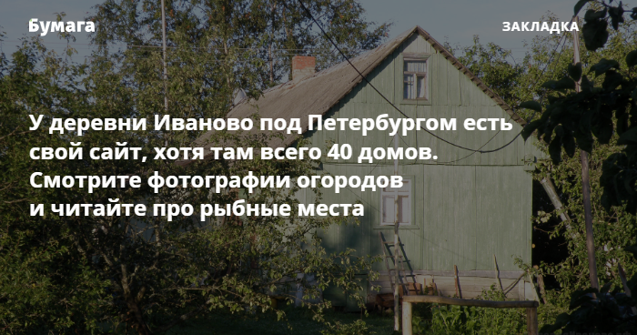 У деревни Иваново под Петербургом, в которой живет всего несколько десятков человек, есть собственный сайт. Первую версию запустили еще в 2006 году, а в 2013-м сайт обновили и перенесли на новый адрес — «деревняиваново.рф». Внимание на это обратил телеграм-канал «Русский камамбер».
