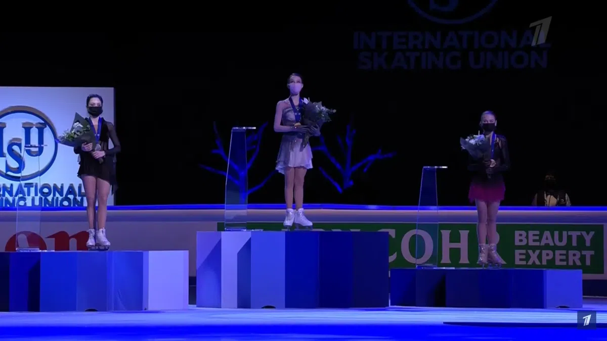 На третьем месте — Трусова, 16-летняя подопечная олимпийского чемпиона Евгения Плющенко, набравшая 217.20 балла (64,82 баллов за короткую программу, 12 место + 152,38 за произвольную, 1 место).