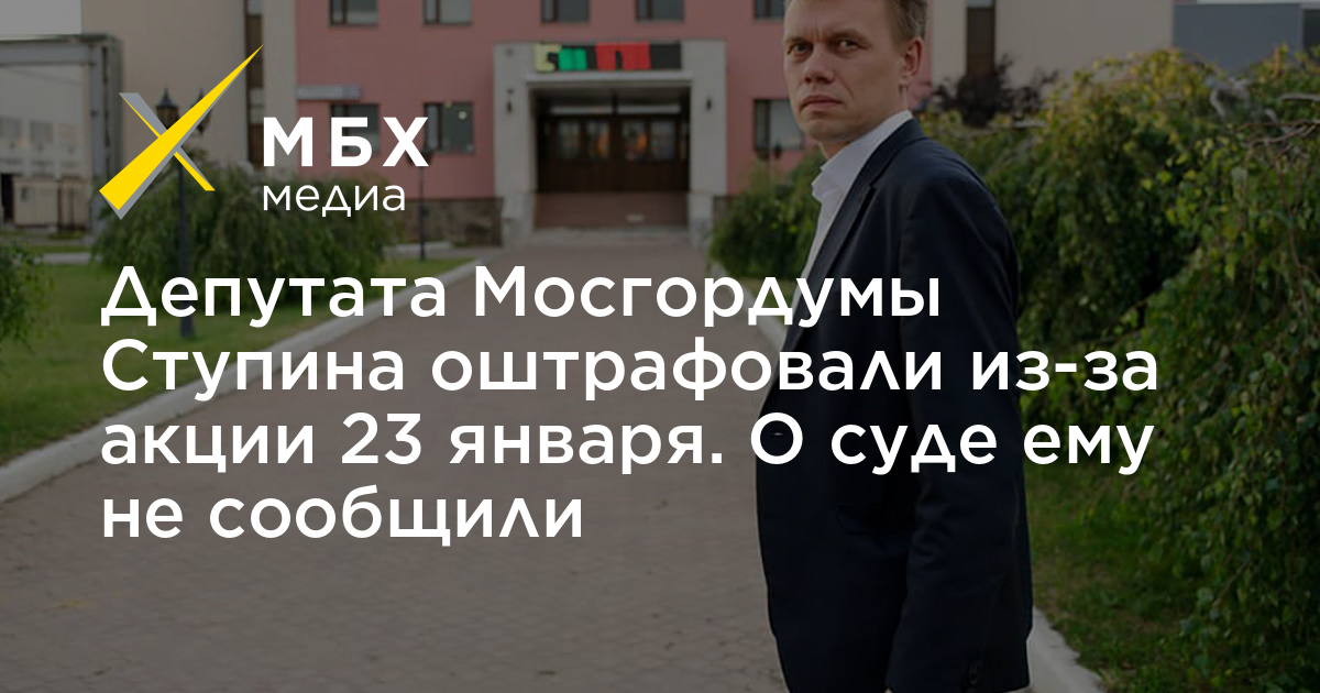 Депутата Мосгордумы Ступина оштрафовали из-за акции 23 января. О суде ему не сообщили