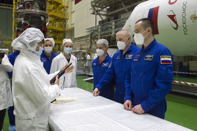 - 27 марта космонавты и астронавты провели на космодроме Байконур первую тренировку в транспортном пилотируемом корабле "Союз МС-18".