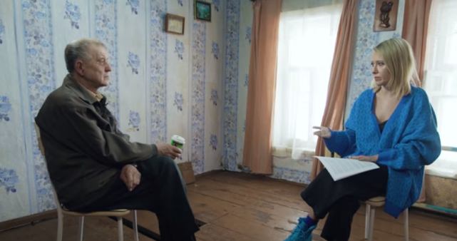 • So, what’s the problem with the film? Firstly, the tone: Sobchak and Mokhov sit opposite one another on stools and Mokhov sips coffee from a cup. I.e. it looks exactly like almost any other YouTube interview. And Sobchak jokes repeatedly with Mokhov, for example asking him when he lost his virginity:
