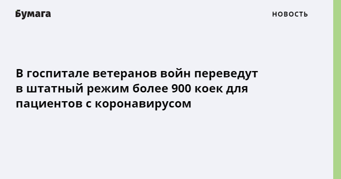 В госпитале ветеранов войн переведут в штатный режим работы более 900 коек для пациентов с коронавирусом