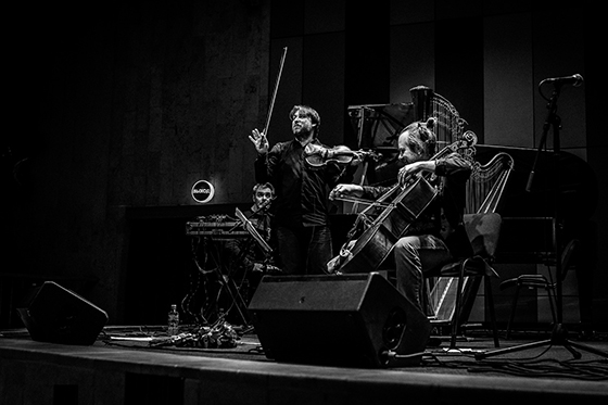 Сейчас, когда мы играем в академических залах, мы стараемся выступать составом в 10 человек — с арфой и таким «внутренним» квартетом, то есть к уже имеющейся скрипке и виолончели добавляем скрипку и альт. Второй диск мы записывали именно таким составом — и он практически весь будет с арфой и квартетом.