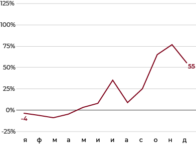 Но лишь в считаных регионах — Москве и на Дальнем Востоке — падение активности сохранилось или снизилось в мае. В остальных жители начали возвращаться к привычному образу жизни, а к августу потребление практически вернулось к показателям 2019 года. И осенью ничего не изменилось — потребительская активность россиян лишь символически, на 2-3 процентных пункта, снова снизилась в ноябре.