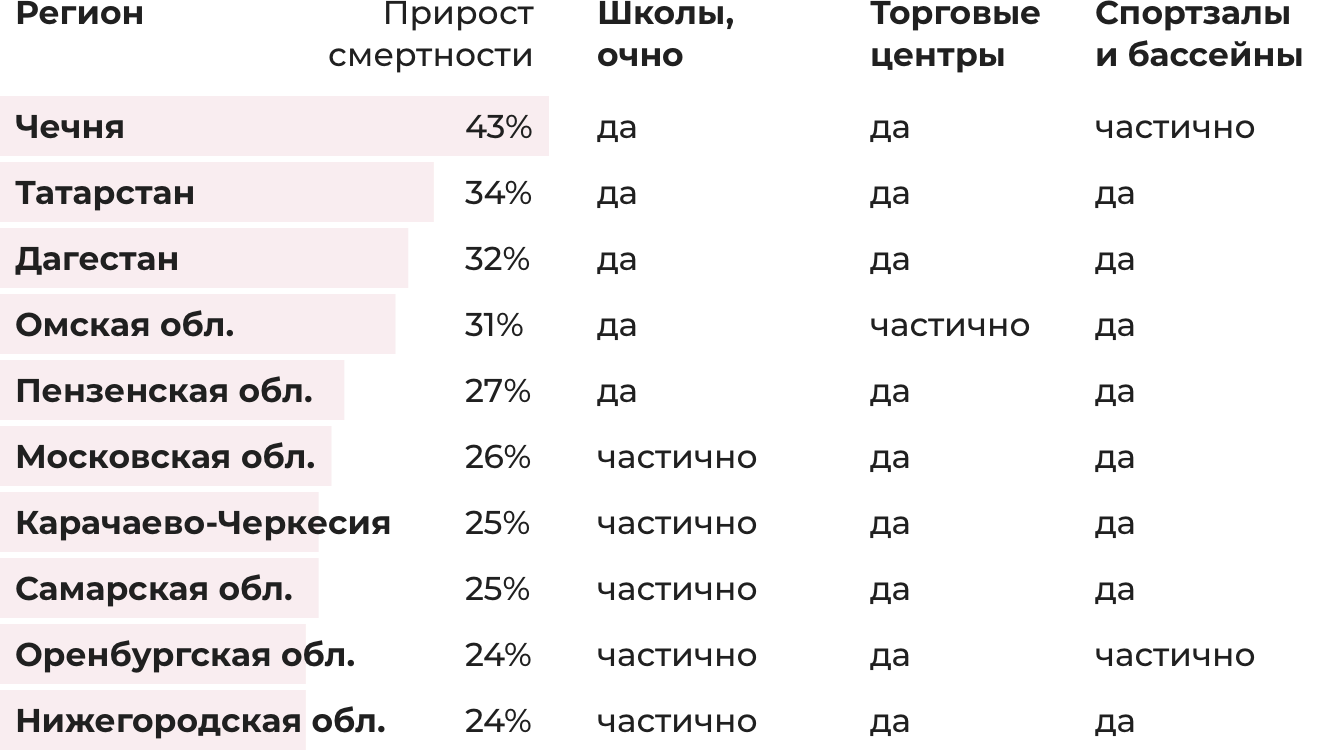 Какие общественные пространства работали в регионах с наибольшим приростом смертности