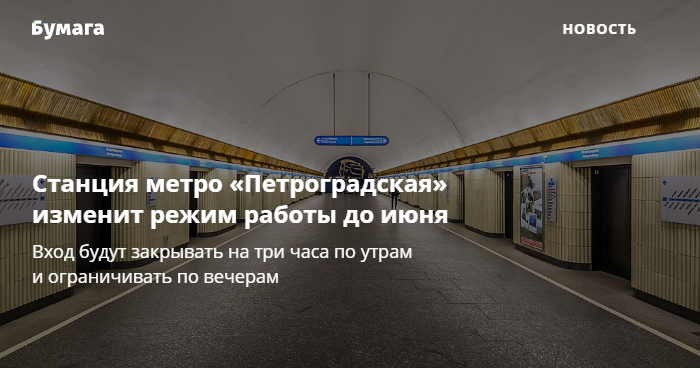 Станция «Петроградская» изменит режим работы на 2 месяца