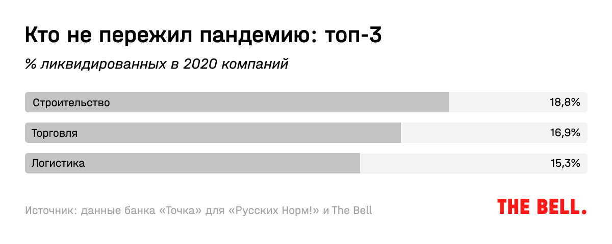 — По моим ощущениям, 10–15%. Но во-первых, у нас немного сдвинутая выборка: «Точка» исторически мало работала с розничным бизнесом, который пострадал сильнее всего. А во-вторых, интересно не что будет с юрлицами, а что будет с предпринимателями. Закроется юрлицо — жалко. Но многие найдут силы подняться и бежать дальше.