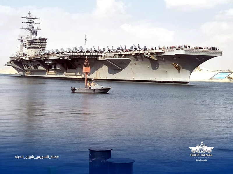 Планировалось, что Dwight D. Eisenhower, находившийся во главе боевой группы в Восточном Средиземноморье, пересечет канал еще 27 марта. На протяжении всего пути до выхода в Суэцкий залив сопровождать Dwight D. Eisenhower, который позднее направится в район Персидского залива, будут два буксира управления канала. Авианосец имеет на своем борту 48 многоцелевых истребителей F/A-18E Super Hornet, самолеты радиоэлектронной борьбы и раннего предупреждения, транспортники, а также противолодочные и спасательные самолеты и вертолеты.
