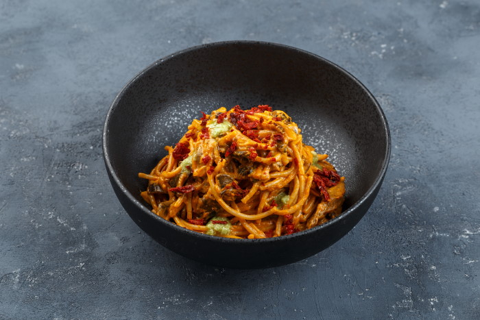 В раздел с закусками включили сэндвичи из ремесленного хлеба, хумус из печеной паприки и салат с киноа и авокадо. В «Главном» можно найти более сытные позиции: супы, мятый картофель с грибным конфитюром, цельнозерновую пасту с домашним песто и другие блюда.