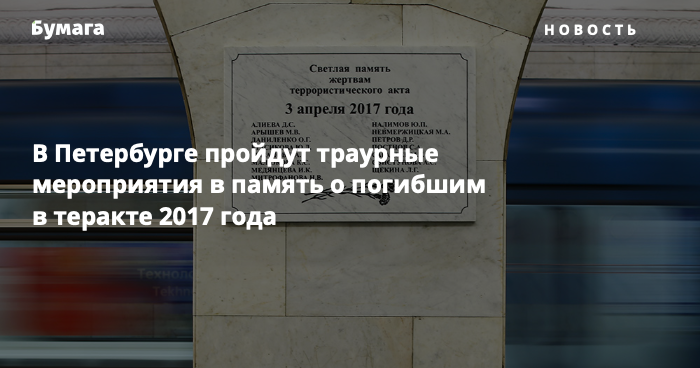 Как рассказала пресс-служба комитета по социальной политике Петербурга, панихида пройдет по предложению родственников погибших. Возложение цветов на станции метро будет проходить в течение дня, чтобы не создавать массового скопления людей во время пандемии. При этом там также будет церемония при участии пострадавших и родственников погибших.