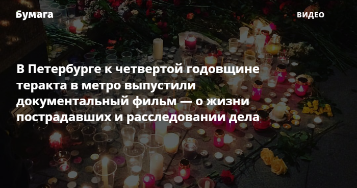 В Петербурге выпустили документальный фильм о теракте в метро, который произошел 3 апреля 2017 года. Автор картины — Ирина Снеговская, создательница социального ютьюб-проекта «Россия для грустных?».