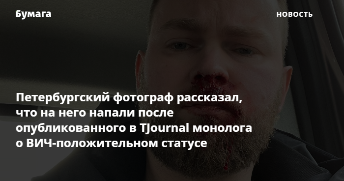 Петербургский фотограф Илья Бронский сообщил, что его избили после публикации в TJournal монолога о жизни с ВИЧ-положительным статусом. Неизвестный ударил мужчину сзади, назвав «спидозным».