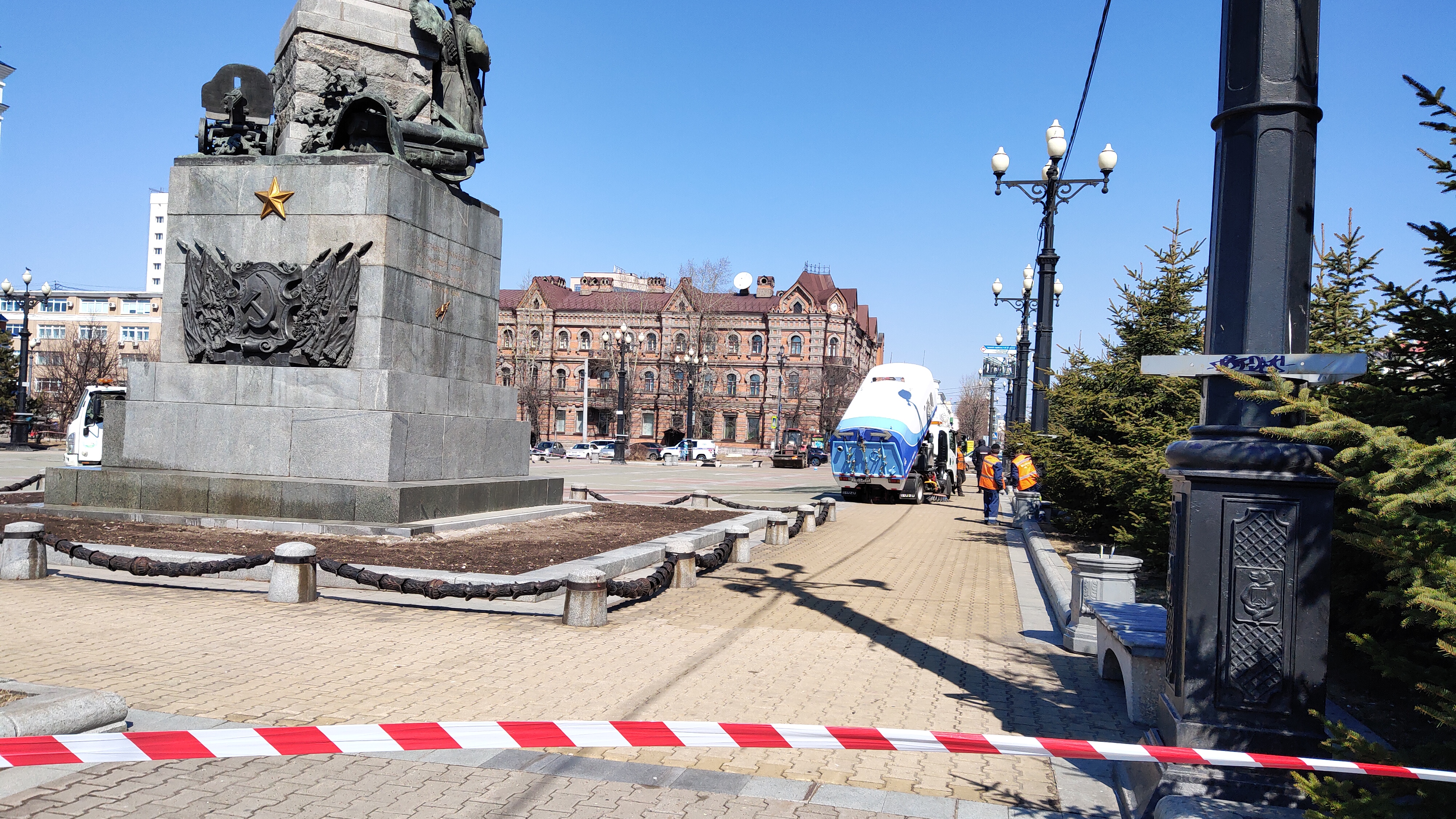 Публичное мероприятие должно было начаться в 14.00 по местному времени. Но к началу митинга Комсомольская площадь была оцеплена. Власти организовали на ней уборку, рабочие чистят все: от брусчатки до памятника, передал с места события корреспондент Сибирь.Реалии.