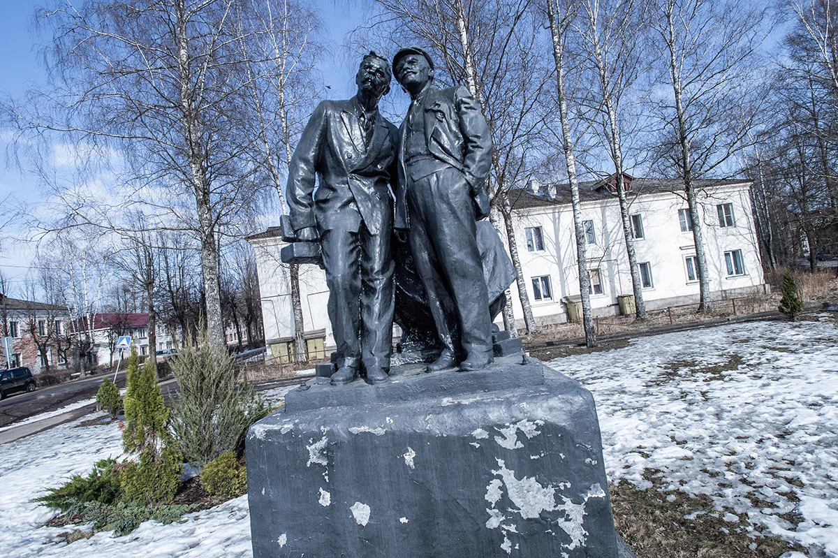 В воздухе висит копоть, откашляться не получается десять минут. На площади недалеко от котельной памятник: Ленин и Горький. Смотрят через площадь на продуктовый ларек из 90-х. Он больше похож на оборонительное сооружение — обрешечен со всех сторон, окошко маленькое, чтобы не вломились.
