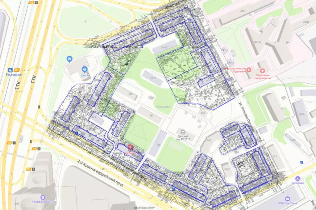 Также, согласно одной из возможных концепций в Камушках может появиться эстакада, связывающая 2-й Красногвардейский проезд с внешней стороной ТТК. Тогда оставшиеся шесть домов будут расселены за счет бюджета в рамках недавно принятого закона «О комплексном развитии территорий».