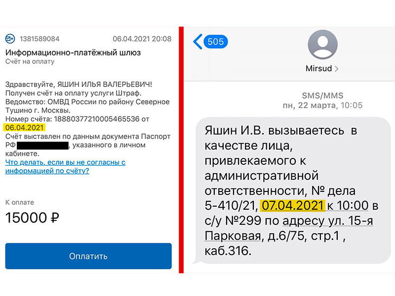И вот готовимся мы с адвокатом Вадимом Прохоровым, значит, к суду, который завтра утром. А сегодня вечером портал госуслуги мне сообщает: Илья Валерьевич, суд признал вас виновным, вот вам штраф 15 тысяч рублей, вот реквизиты, желаем всего хорошего.