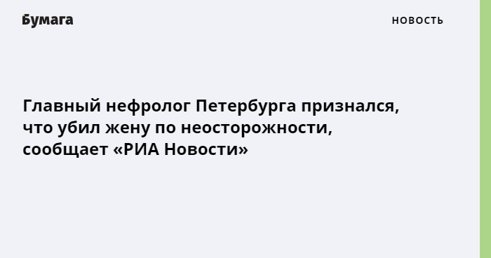 Главный нефролог Петербурга Александр Земченков сделал чистосердечное признание в том, что убил жену Ирину по неосторожности. Об этом сообщает «РИА Новости» со ссылкой на адвоката обвиняемого. Подтверждения этой информации от ведомств пока нет.