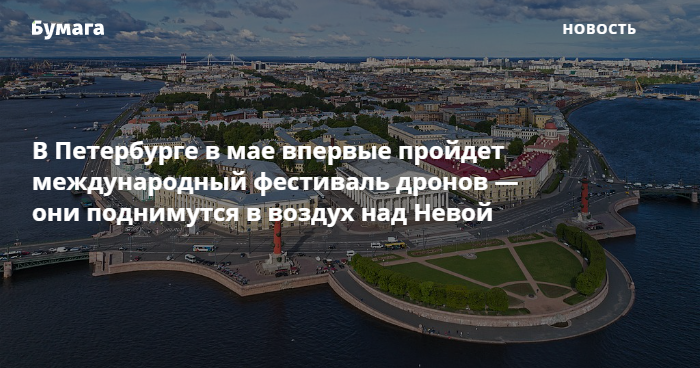 В Петербурге 2 мая впервые пройдет международный фестиваль дронов. Он завершит праздник, посвященный открытию туристического сезона. В пресс-службе комитета по развитию туризма «Бумаге» сообщили, что дроны поднимутся в воздух в акватории Невы между Петропавловской крепостью и Стрелкой Васильевского острова примерно в 22:30.
