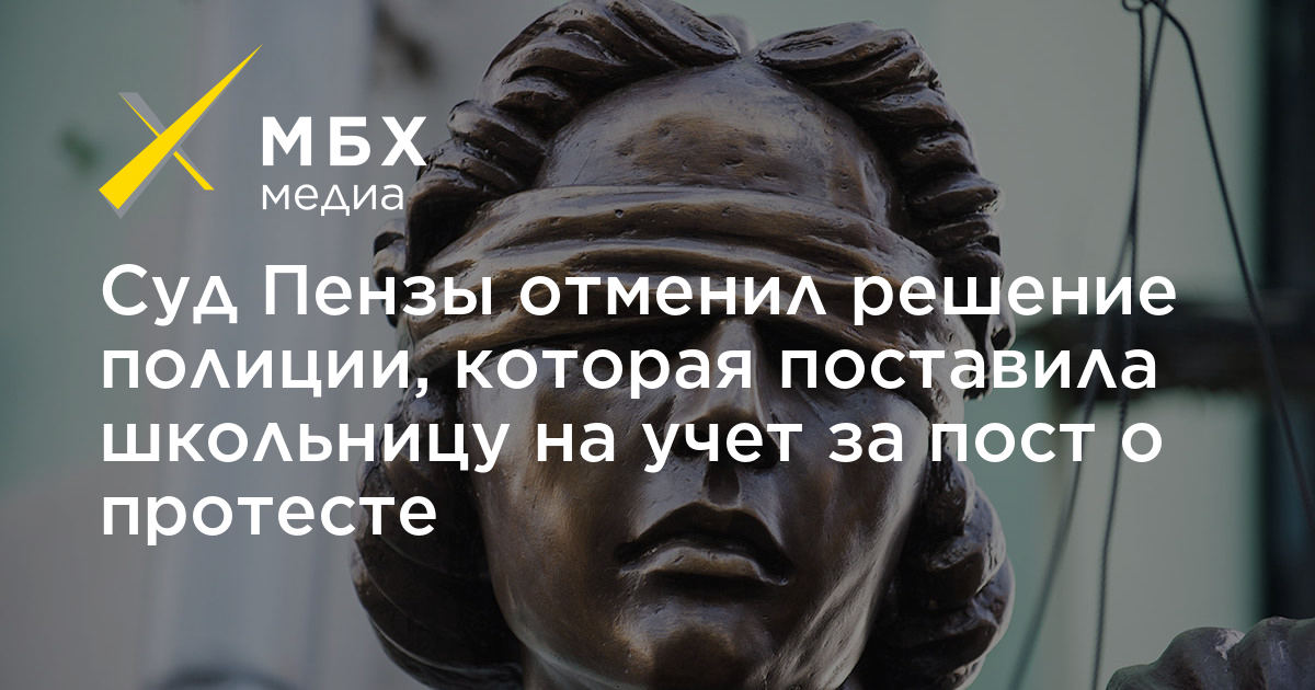 Суд Пензы отменил решение полиции, которая поставила школьницу на учет за пост о протесте