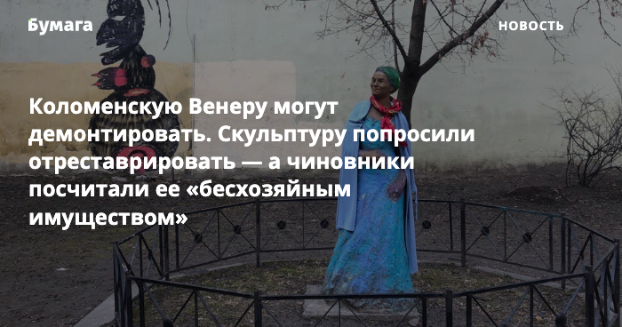 Жалобу рассмотрел комитет по благоустройству и установил, что Коломенская Венера является «бесхозяйным имуществом» и подлежит демонтажу. В ответе отмечается, что работы по вывозу скульптуры запланированы на срок до 25 сентября 2021 года и будут выполнены при наличии на это финансирования.