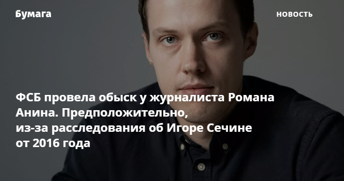 Сотрудники ФСБ пришли с обысками к главному редактору издания «Важные истории» журналисту Роману Анину. Об этом сообщает само издание.