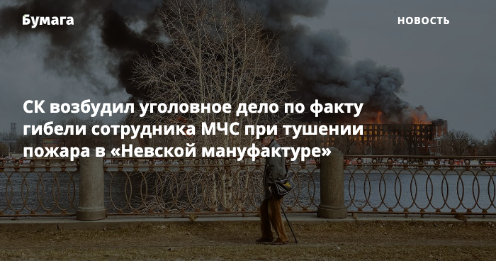 Следственный комитет по Петербургу возбудил уголовное дело по факту гибели сотрудника МЧС при тушении пожара в здании «Невской мануфактуры» на Октябрьской набережной, 50. Об этом сообщает пресс-служба ведомства.