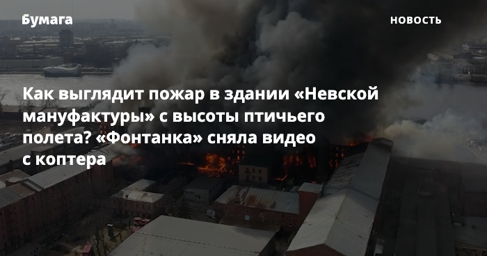 Как выглядит пожар в здании «Невской мануфактуры» с высоты птичьего полета?
