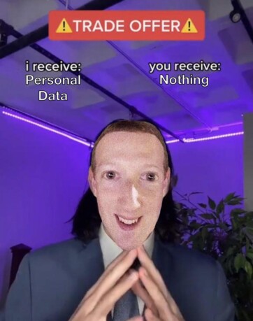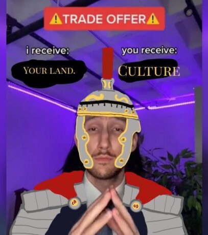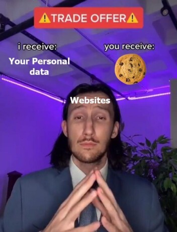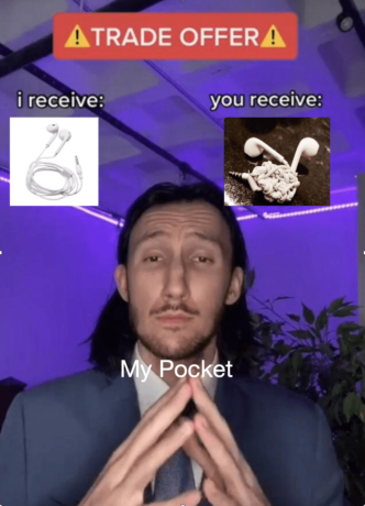 На основе скриншотов из роликов @bradeazy мем распространился в соцсетях. Пользователи Reddit на месте тиктокера представляли всё подряд — от соцсетей, требующих доступ к личным данным в обмен на ничего, до греков, «просто так» предлагающих троянцам деревянного коня.