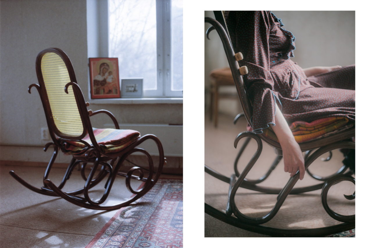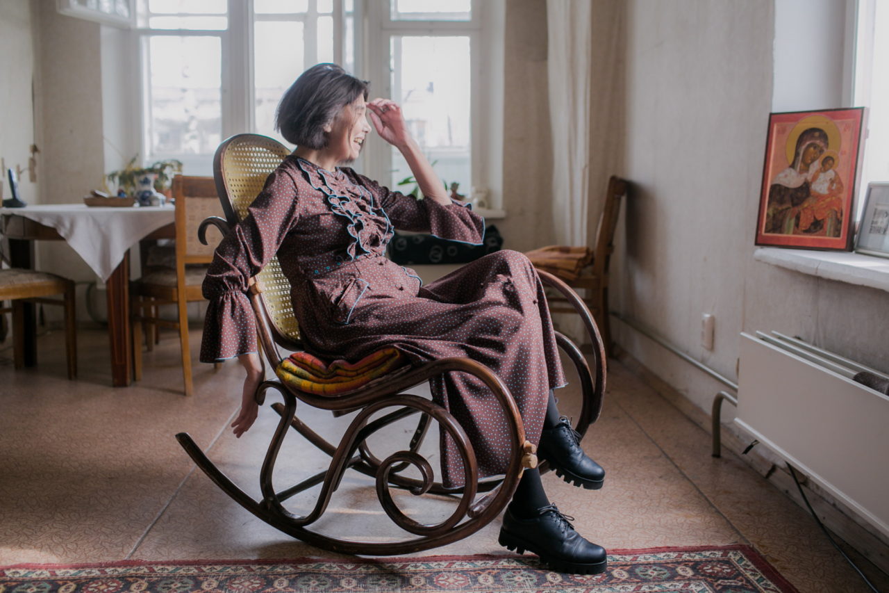 В просторной Татьяниной гостиной и по совместительству спальне нет штор. Белый свет, падающий из окна, резко очерчивает большой круглый стол на деревянных ножках, клетчатый плед на кровати, кресло-качалку. Если бы не розовый коврик для йоги на полу, комнату можно было бы спутать с дачной верандой конца XIX века. В окна «заглядывают» ветки деревьев.