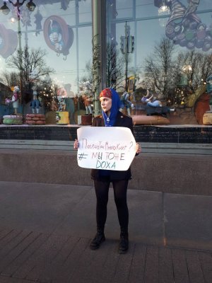 В Санкт-Петербурге задержали Анастасию Михайлову. Девушка встала в одиночный пикет в поддержку редакторов студенческого издания DOXA, у которых сегодня прошли обыски и которым предъявили обвинения в вовлечении несовершеннолетних в опасные для них действия (ст. 151.2 УК).