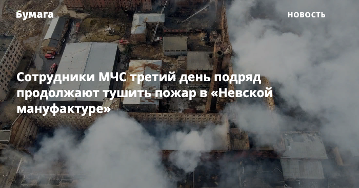Сотрудники МЧС третий день подряд продолжают тушить пожар в «Невской мануфактуре»
