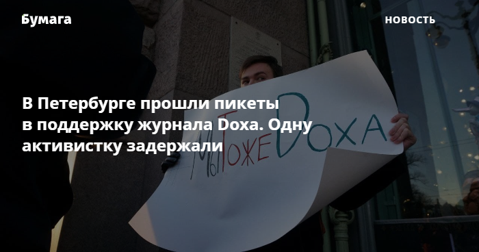 В Петербурге прошли пикеты в поддержку студенческого журнала DOXA. Одну активистку задержали.