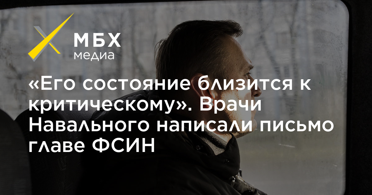 «Его состояние близится к критическому». Врачи Навального написали письмо главе ФСИН