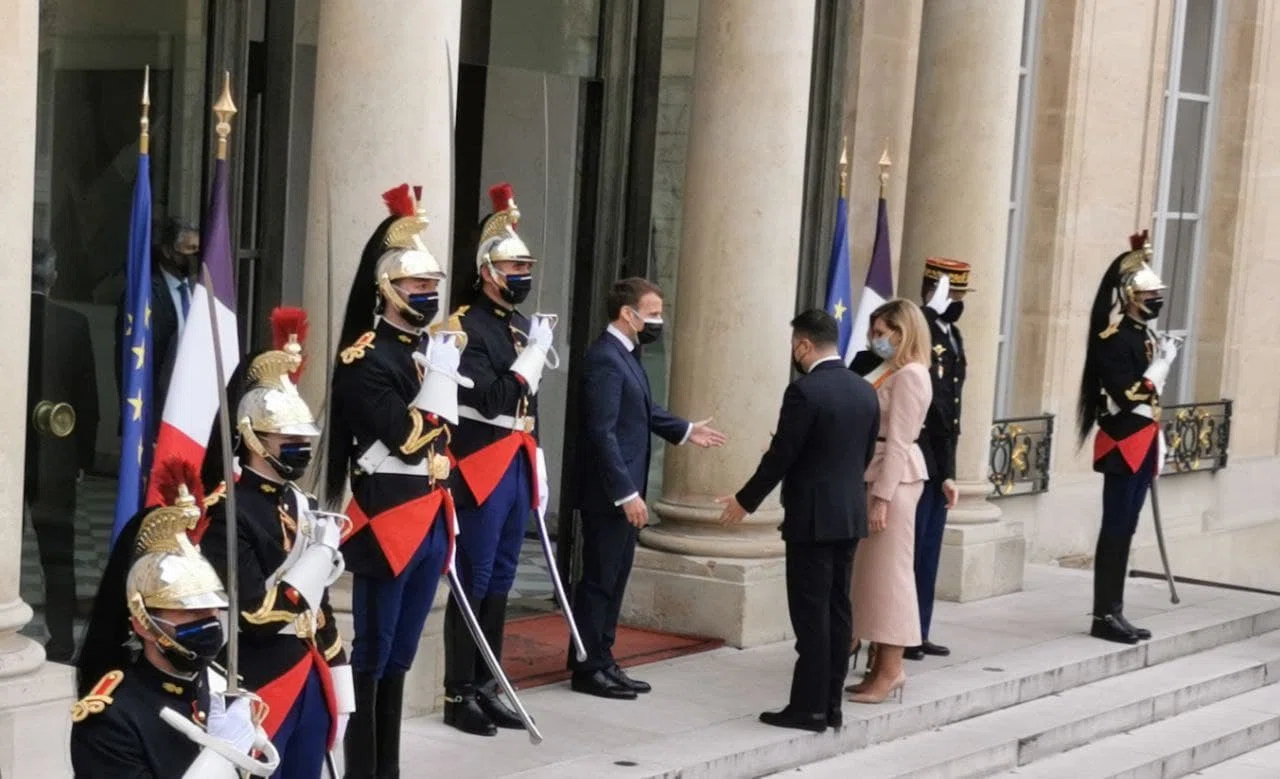 Сам Макрон по итогам встречи опубликовал два твита (каждый — на французском и украинском). Первый: «Спасибо за наши переговоры, дорогой @ZelenskyyUa. Дякую! Давайте и дальше поддерживать начатую динамику (отношений) между Украиной и Францией».