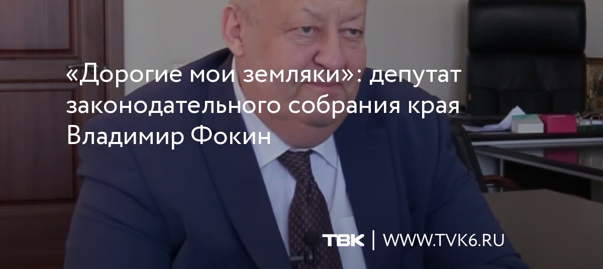 «Дорогие мои земляки»: депутат законодательного собрания края Владимир Фокин