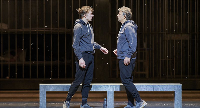 © Michael Pöhn / Wiener Staatsoper «Я убежден, что настоящая метафизика проявляется как раз в обыденном», — заключает режиссер, но обыденность оперы — не то же самое, что обыденность быта. Оба Парсифаля, молодой и старый, напоследок открывают решетки пустых (sic!) камер в знак того, что даруют людям свободу. На последних тактах партитуры старый Парсифаль садится и трагически закрывает лицо руками — наступает от этого катарсис или нет, зависит лишь от особенностей нервной деятельности смотрящего.