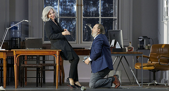 © Michael Pöhn / Wiener Staatsoper Новый «Парсифаль» устроен как спектакль-дежавю: павильон, небо на заднике, стол с ноутбуком, засранный умывальник; сутулые певцы в линялом casual; молодой артист миманса в качестве сексапильного двойника стареющего солиста (стереохрония); тавтологичный по отношению к сцене видеоряд — в качестве моралите, для заполнения оркестровых эпизодов и просто потому, что с монтажом работать проще, чем с непрерывностью сценического пространства и времени.