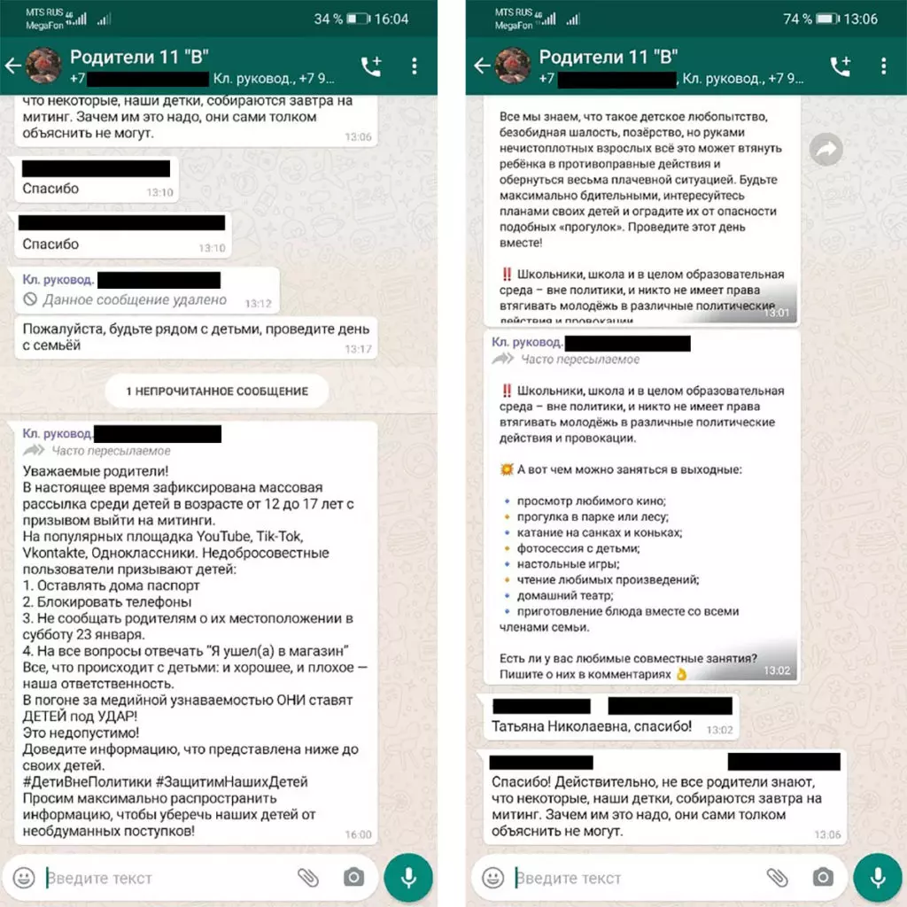 Звуковое сообщение с таким содержанием старшеклассница Кристина Сергеева (имя изменено) из города Белово в Кузбассе отправила своим друзьям незадолго до январских митингов в поддержку Алексея Навального. Девушка была далеко не единственной, кто столкнулся с жестким прессингом со стороны учителей. Местная администрация была сильно озабочена тем, чтобы под любым предлогом не дать молодым людям принять участие в акциях. Хотя большинство подростков даже не собирались этого делать и в целом не слишком увлекались политическим активизмом.