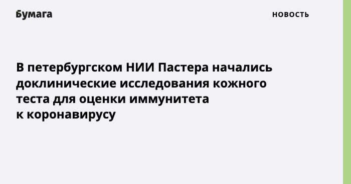 В петербургском НИИ эпидемиологии и микробиологии имени Пастера начались доклинические исследования кожного теста для оценки иммунитета к коронавирусу