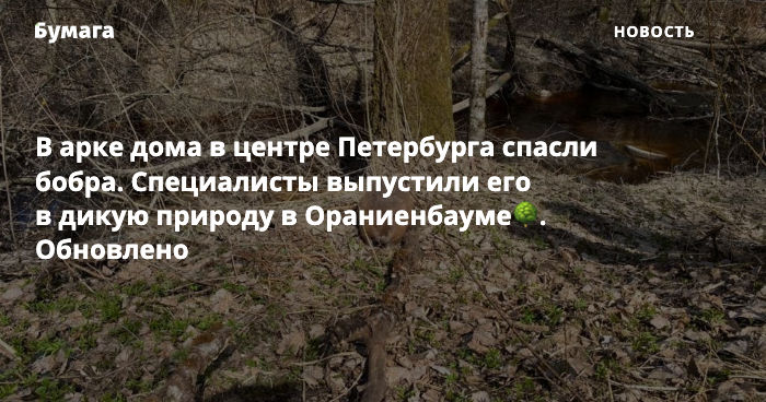Обновлено 20 апреля в 16:12. Специалисты комитета по природопользованию осмотрели бобра и выпустили его на территории будущего заказника «Ораниенбаумский».