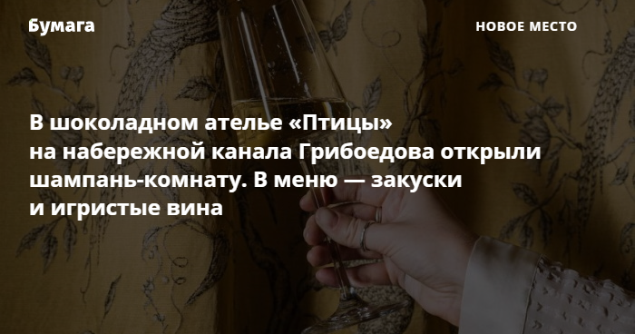 В шоколадном ателье «Птицы» на набережной канала Грибоедова открыли шампань-комнату